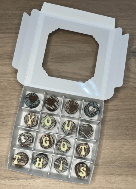 علبة تحفيزية تحتوي على 15 قطعة شوكولاتة، مصممة لتشجيع ودعم أحبائك.